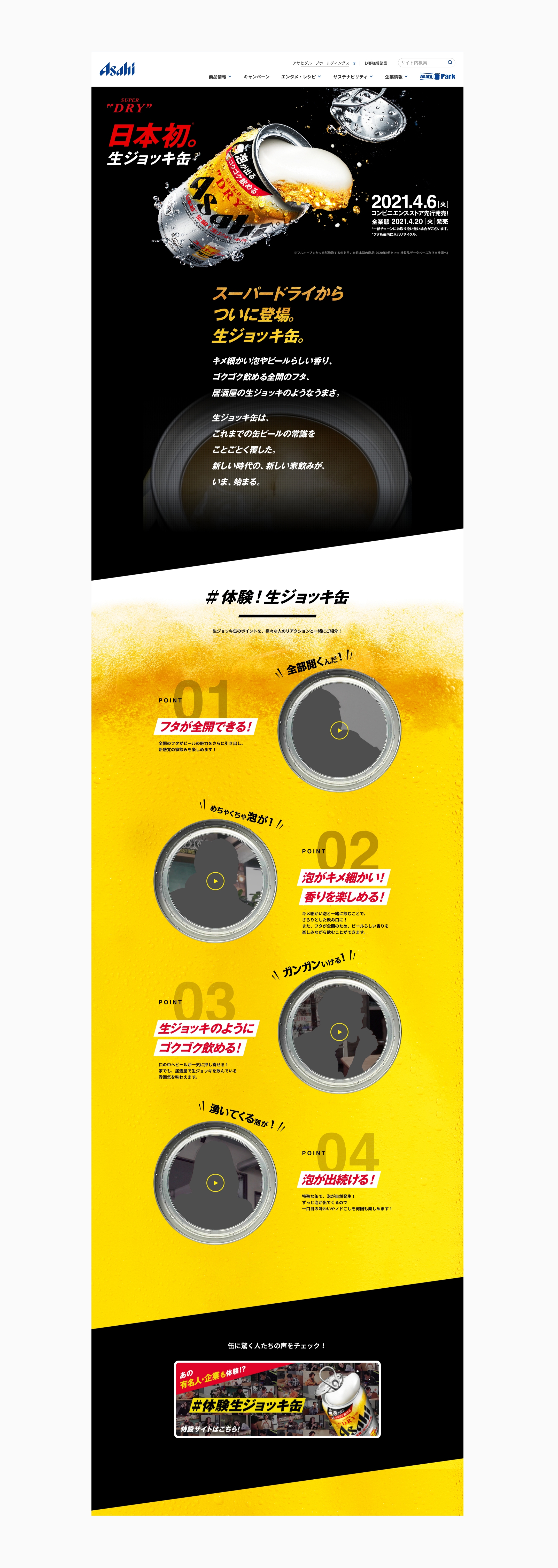 Webサイトでは「フタが全部開く」「泡が出る」特徴をシズル感があるリッチな動きで表現。また、トップページに発売日までのカウントダウンを表示し、「やってみたい」「飲んでみたい」の期待感が発売当日にピークを迎えるように設計した。