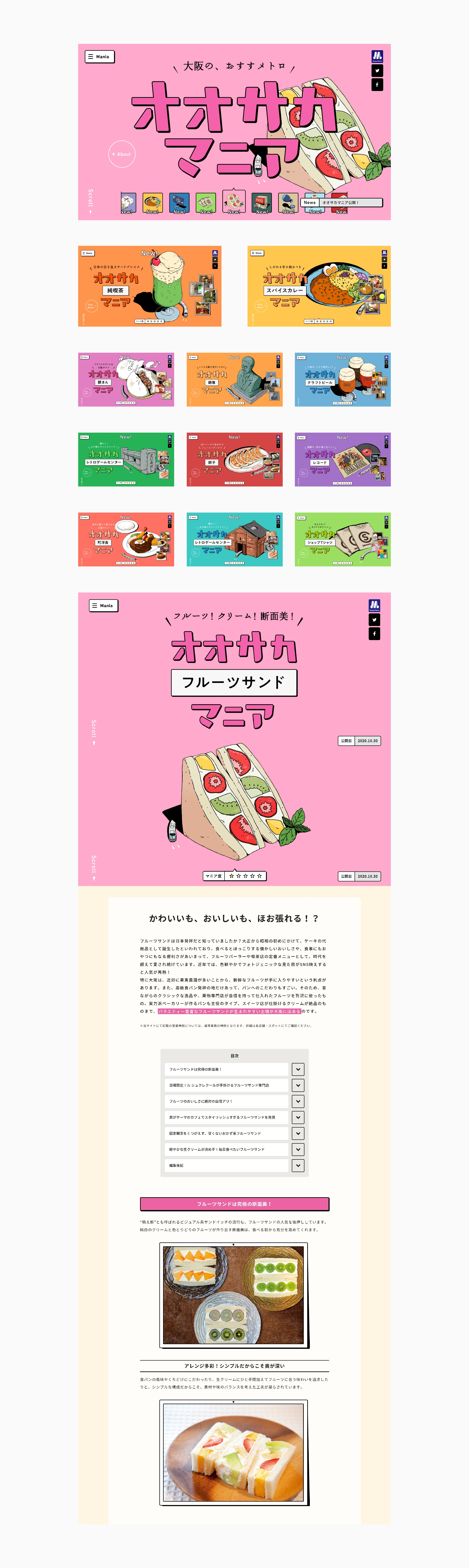 OsakaMetroが「大阪の新たな魅力を発信する」プロジェクトをスタート。その中で、大阪の魅力を伝えるWebサイトも制作することになったが、すでに大阪のお出かけサイトや情報誌は数多く存在する。埋もれないために、「偏愛」をテーマにしたマニアックな情報サイト「オオサカマニア」を提案。「深く、濃く、誰も知らない」テーマやスポットを紹介するサイトを制作した。