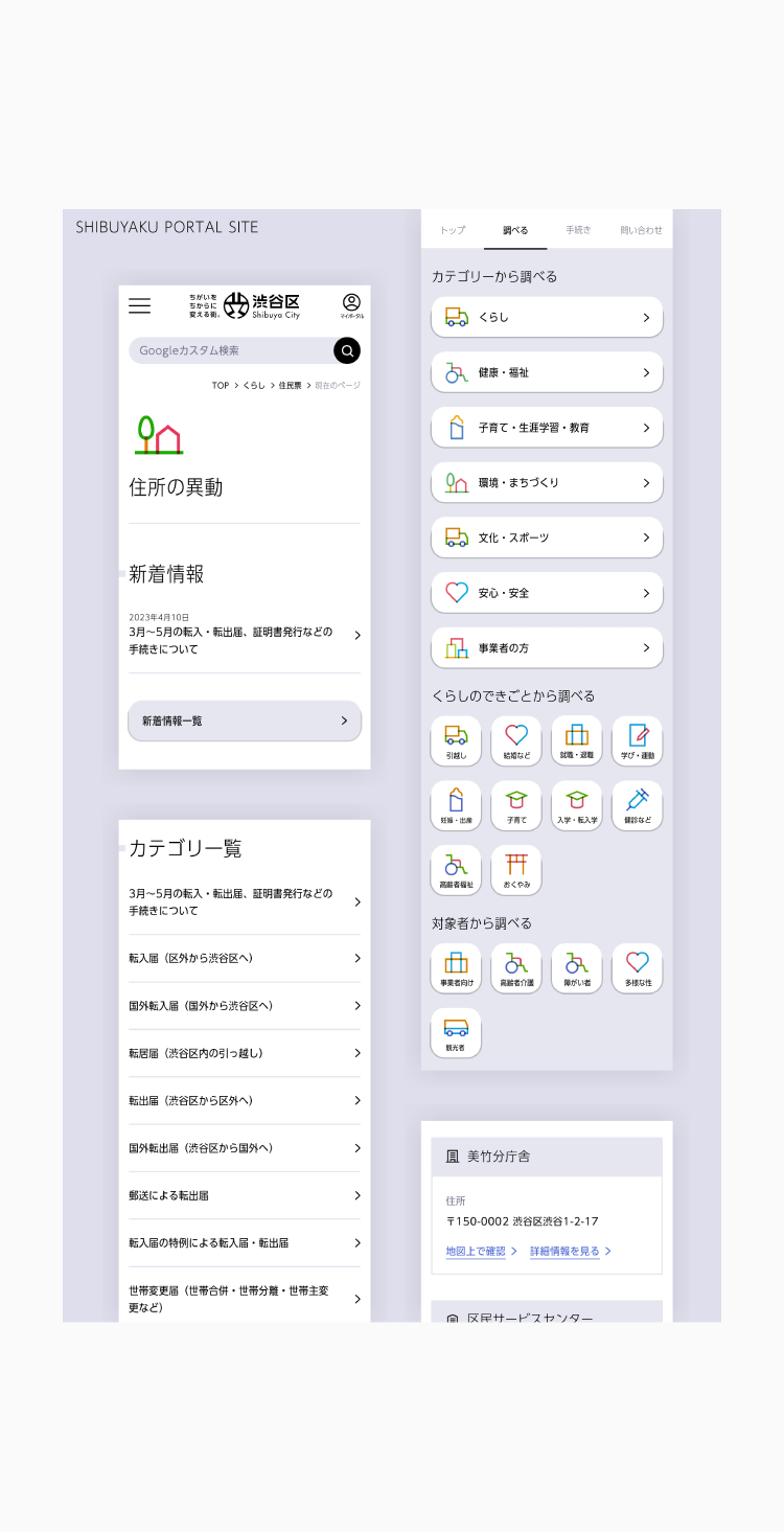 そしてそこから、誰もが求める情報にスムーズにたどり着き、手続きを行い、サービスを享受できる自治体オウンドメディアのあるべき姿を「マルチインデックス型オウンド」と定義。渋谷区が運営するメディアの特性を生かした情報発信や機能を再設計し、あらゆる生活者の環境に合わせたサービス提供を実現することとした。また、さまざまなメディアやタッチポイントからより詳細な情報を求めてオウンドサイトに訪れた場合も、スムーズに求める情報にたどり着けるUX/UIを目指した。