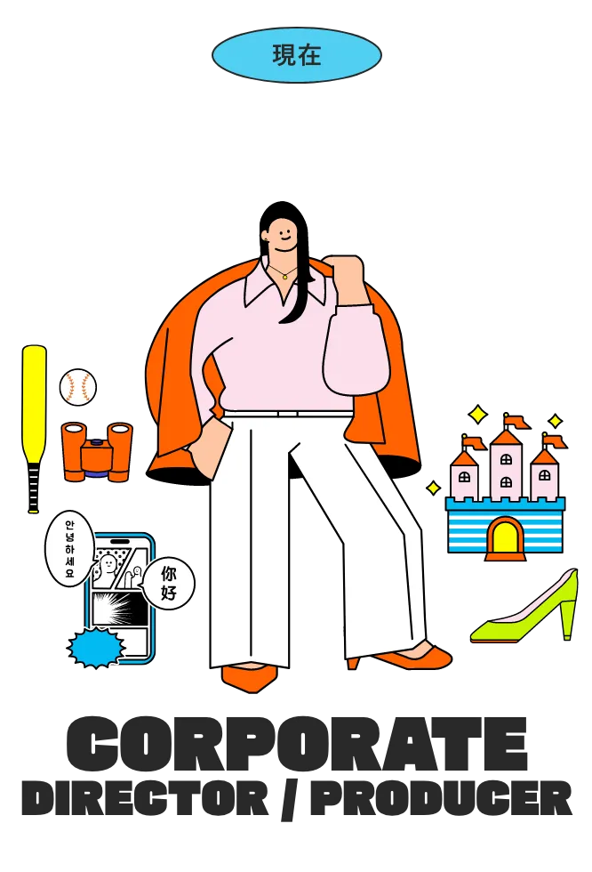 - コーポレートディレクターとして復帰。経営会議や取締役会、株主総会といった重要会議の運営に携わっている。また、アメリカに籍があるクライアントとアイスタを繋ぎ、プロジェクトを推進するプロデューサーとしての役割も担う。