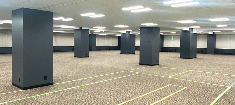 そして実際のビルを内見しに行ったわけですが、目に飛び込んできたのは、だだっ広い空間にやたらと目につく柱。とにかく柱の主張がすごい。ブラインドが降りて薄暗く、天井は低く、広いのに圧迫感のある空間でした。