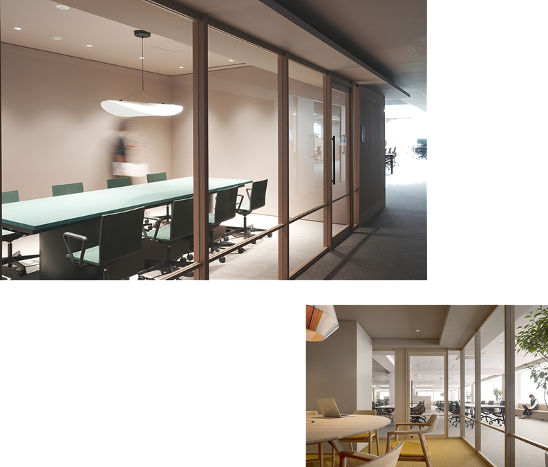 他にも会議室など、照明は割とクセ強を取り入れ、アクセントにしています。