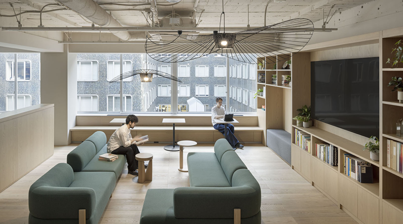 今どきのオフィスとして欠かせないのは、社員のためのリラクゼーションスペース。