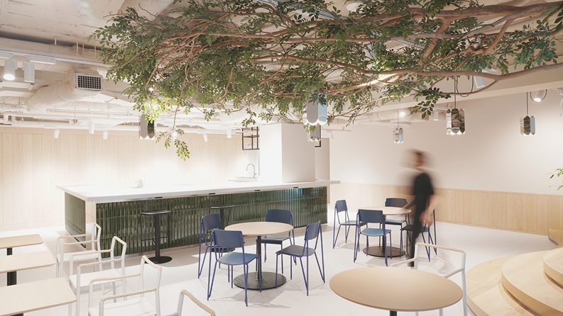 ですが、社員の稼働が始まってみると、人の行き来が程良くハマり、ちゃんと余白が活用されていって充実した空間になっています。