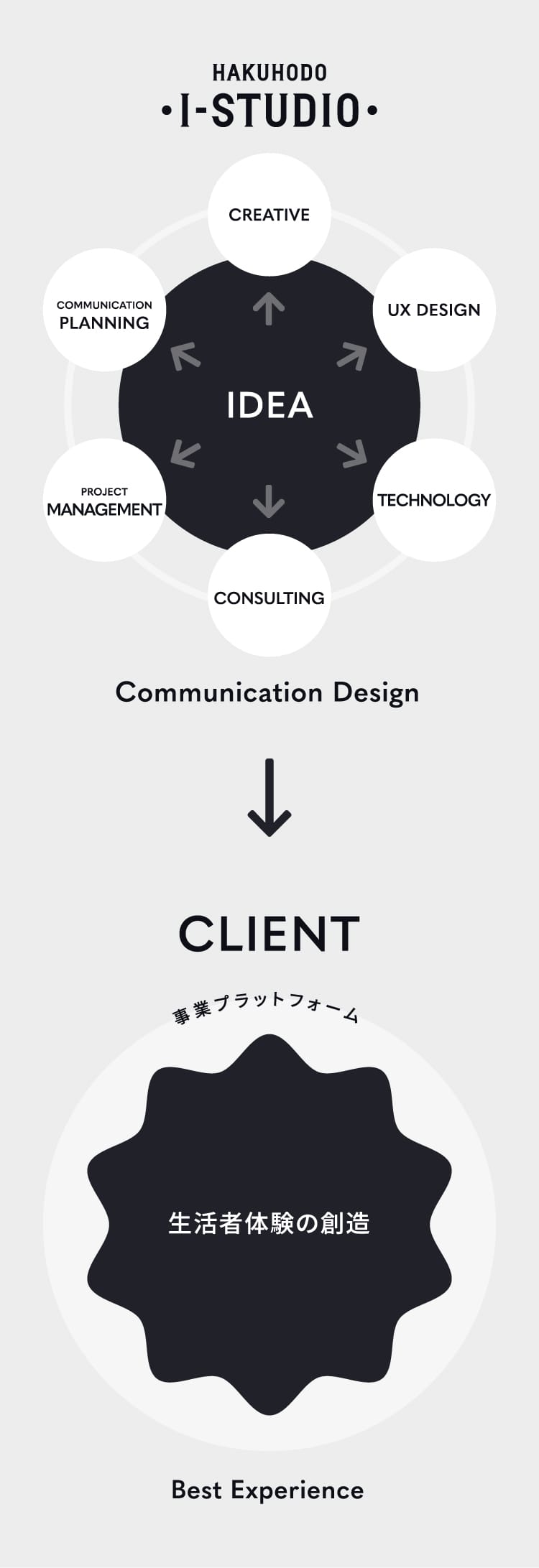 今やお客様のビジネス基盤である事業プラットフォームを中心にあらゆる手法を組み合わせたコミュニケーションデザインで最高のブランド体験・ユーザー体験を創り出し生活者とお客様のエンゲージメントを高め続けます。